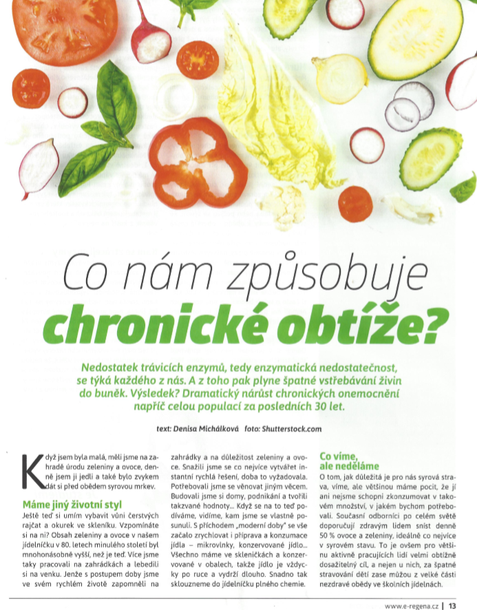 Naše trávicí orgány nemají schopnost vyprodukovat takové množství enzymů, abychom mohli žít ve zdraví při současném českém jídelníčku.