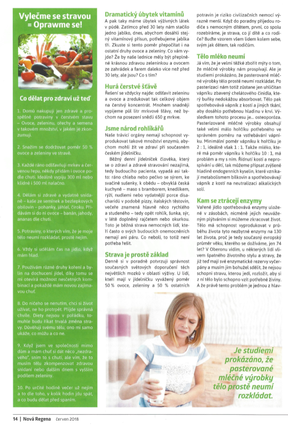 Povídali jsme si dlouho o tom, co je potřeba udělat doma za změny. V lednici by měly vymizet mléčné výrobky, a to pro celou rodinu bez rozdílu, na snídani by si měli dát zdravou bezlepkovou kaši s rostlinným mlékem, na maximum omezit konzumaci obilovin a nezdravých potravin. A stravu denně upravovat podle zdravého talíře našich již známých 50 % ovoce a zeleniny. A ideálně denně odšťavňovat mrkev a červenou řepu, každému alespoň 2–3 dcl. Po celodenní proceduře u nás si rodinka odvážela domů plazmový generátor s nastavenými dávkami frekvencí na konkrétní škůdce. V průběhu dvou let u nás byli ještě několikrát. Vždy hlásili pokroky, každý za sebe, a my měli radost, jak se jim daří.