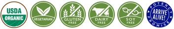 • Certifikované USDA Organic, vegetariánské, bezlepkové, bez mléka a sóje.