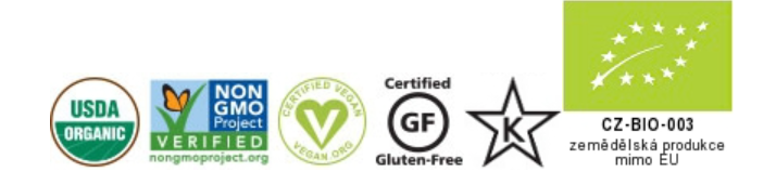 Označení: ¹ % referenční hodnota příjmu, * z certifikované organic směsi, ** RAW přirozeně vytvořené živiny z kultur S. cerevisiae, CZ-BIO-003 zemědělská produkce mimo EU,