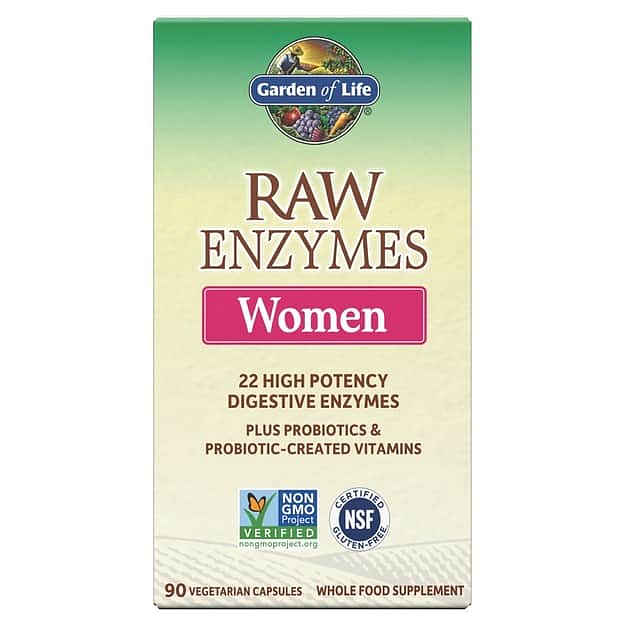 Garden of Life RAW enzymy pro ženy jsou nejkomplexnější trávicí enzymovou směsí, která je dnes k dispozici. Poskytuje 22 účinných trávicích enzymů, probioticky-vytvořené vitamíny, minerály a antioxidační enzymy, včetně glutathionu, katalázy a superodidu dismutázy, společně s výkonnými probiotiky, které působí jako "továrny na enzymy", To znamená, že generují další enzymy "pracující přesčas", a díky tomu pomáhají podporovat mimořádné zdraví trávicího systému. Enzymy mohou pomoci při trávení mléčných výrobků, obilnin, cukrů, ořechů, semínek, fazolí, brokolice, zelí a dalších těžko stravitelných potravin. RAW enzymy pro ženy byly speciálně vyvinuty, aby splňovaly jedinečné zažívací a celkové zdravotní potřeby žen - s přidanou silou enzymů na podporu trávení sacharidů.